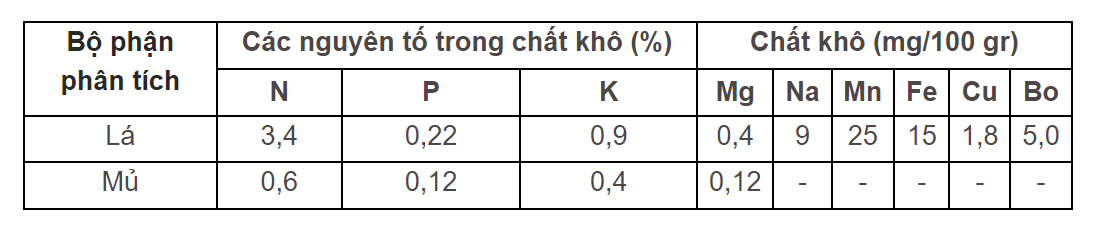 Hàm lượng các nguyên tố khoáng trong mủ cao su.